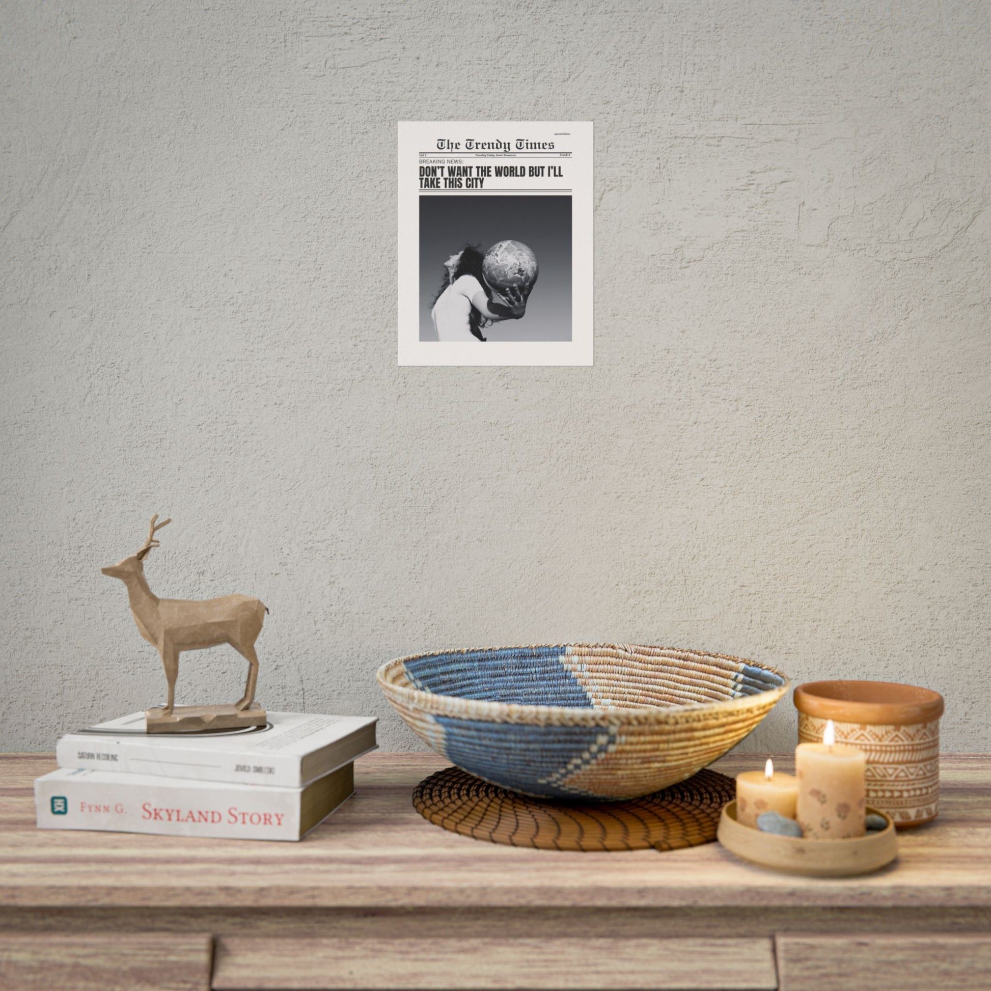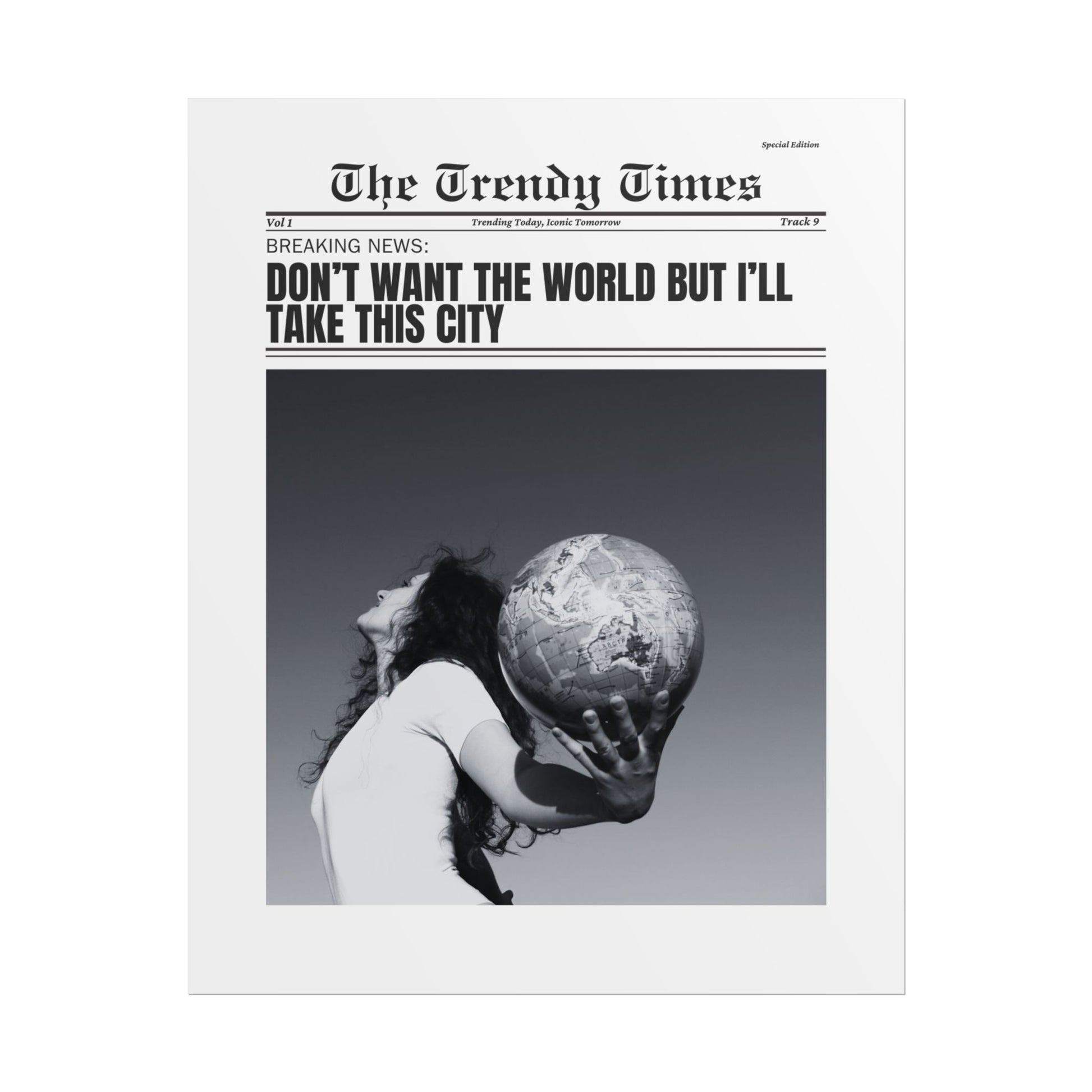 Bring the power of music into your space with The Trendy Times Music Lyric Poster. Featuring a carefully curated lyric from your favorite song, this stylish print transforms timeless words into a work of art. Printed on premium matte paper, each poster offers a smooth, sophisticated finish that enhances the bold typography and vintage-inspired newspaper layout, creating a striking visual that captures the spirit of the song.